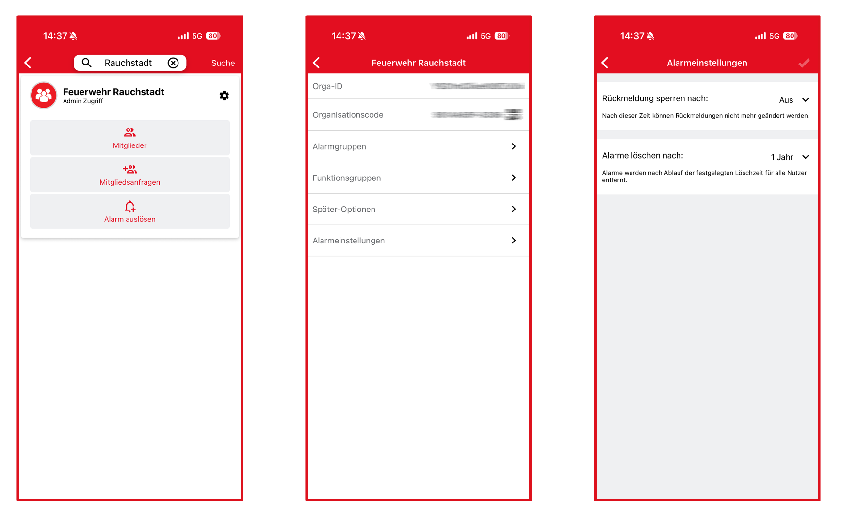 Alarmeinstellungen ermöglichen die automatische Sperrung oder Löschung von Rückmeldungen nach einer festgelegten Zeitspanne. Administratoren können diese Einstellungen zentral für die gesamte Organisation vornehmen und so den Umgang mit Alarmen effizient steuern.