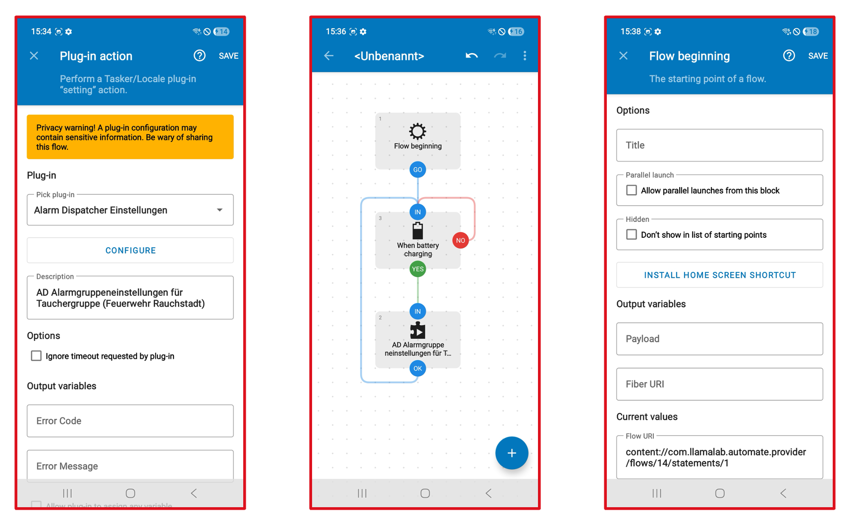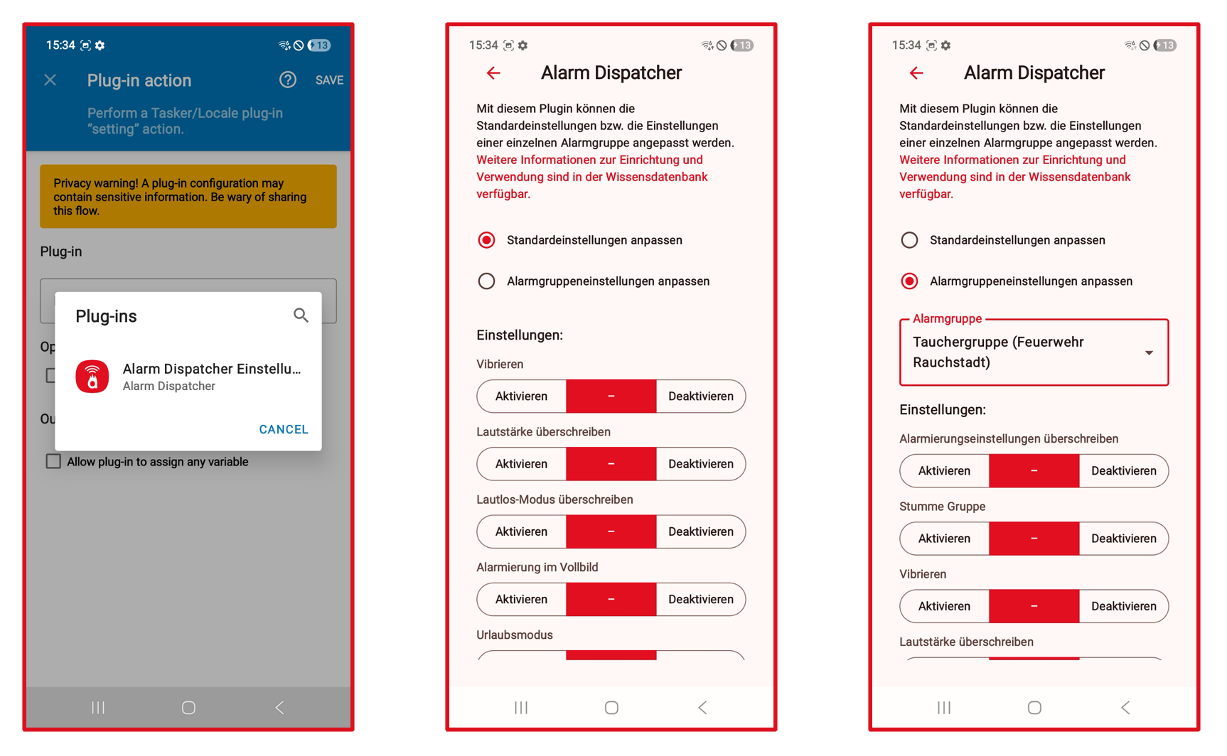 Über ein Plugin kann die Alarm Dispatcher App in der App Automate gesteuert werden. Für diese Einstellungen gibt es auch die Möglichkeit alarmgruppenbezogener Steuerungen.