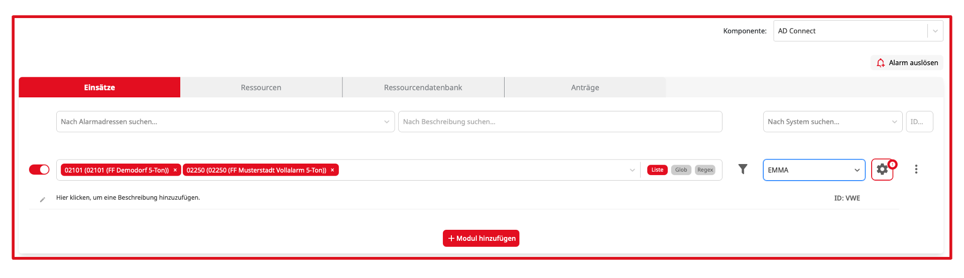 Konfiguration Einsätze
